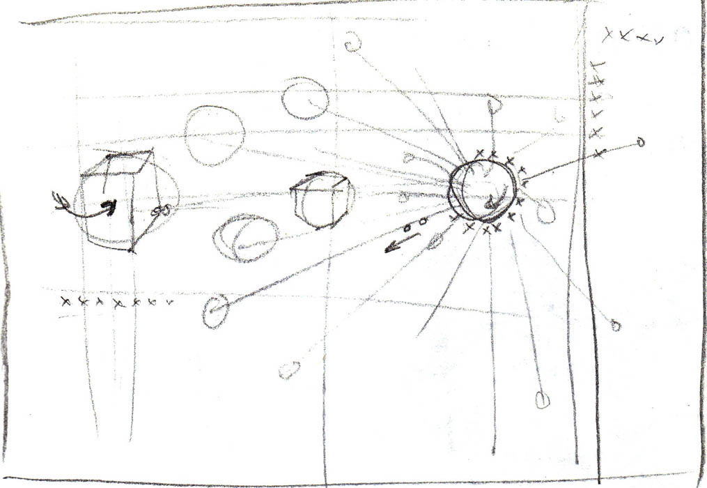 Lines, points and planes spread on the canvas. Scaled "* " symbols fill the empytiness.